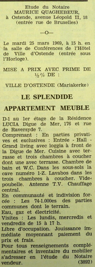 Trefwoorden ADVERTENTIES ; VERKOPINGEN APPARTEMENT ZEEDIJK 176 VILLA LUCIA (FLATGEBOUW) APPARTEMENTEN Plaatskenmerk ARCHIEF 117.8 B35 COUR1969 14-03-1969 Auteurs Anoniem Bron Le Courrier du Littoral Pagina's 10 Print