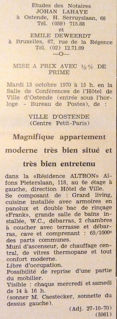 Trefwoorden ADVERTENTIES ; VERKOPINGEN APPARTEMENTEN RESIDENTIE ALTRON APPARTEMENT ALFONS PIETERSLAAN 118 Plaatskenmerk ARCHIEF 117.8 B35 COUR1970 02-10-1970 Auteurs Anoniem Bron Le Courrier du Littoral Pagina's 12 Print