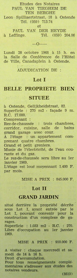 Trefwoorden ADVERTENTIES ; VERKOPINGEN WONING GELIJKHEIDSTRAAT 82 WONINGEN Plaatskenmerk ARCHIEF 117.8 B35 COUR1968 18-10-1968 Auteurs Anoniem Bron Le Courrier du Littoral Pagina's 10 Print