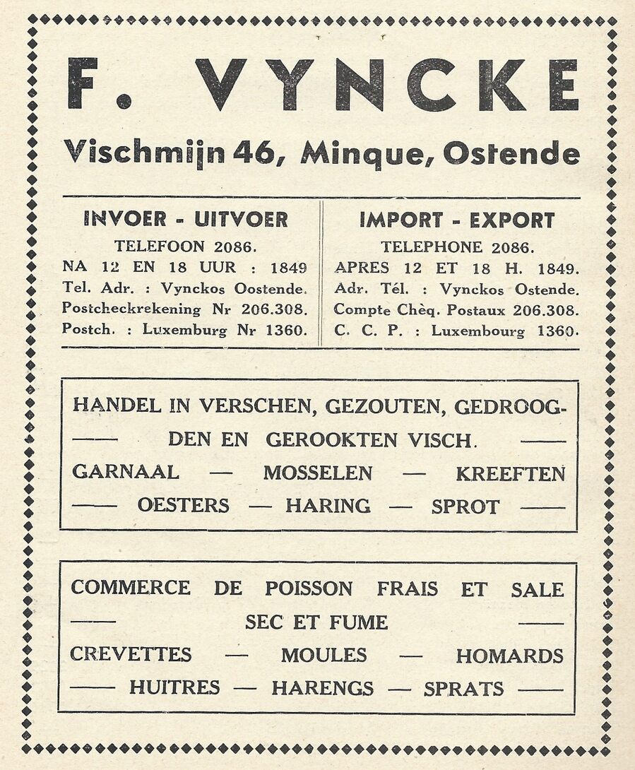 Trefwoorden ADVERTENTIES ; VISHANDEL VYNCKE FERNAND (VISHANDEL) VISMIJN ; BEDRIJVEN HANDEL ; VISHANDEL Plaatskenmerk ARCHIEF 117.6 - BELG1936 Deelbeschrijving uit boek of document Belgisch-Nederlandse visserij-almanak 1936 Pagina 424 Print