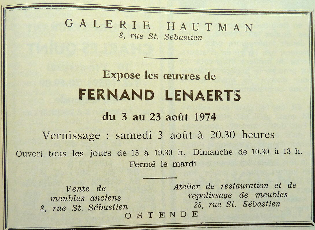 Trefwoorden ADVERTENTIES ; KUNSTGALERIJEN LENAERTS FERNAND (KUNSTSCHILDER) GALERIJ HAUTMAN (KUNSTGALERIJ) KUNSTTENTOONSTELLINGEN Plaatskenmerk ARCHIEF 117.8 B35 COUR1974 02-08-1974 Bron Le Courrier du Littoral Pagina's 3 Print