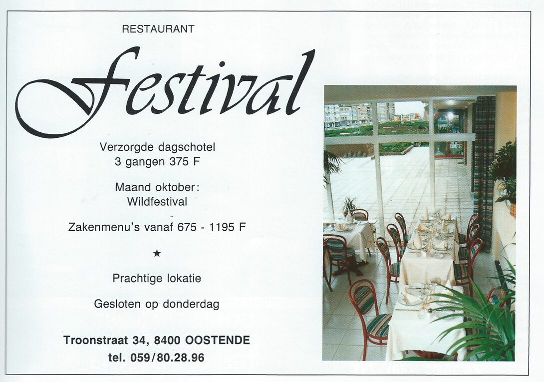 Advertentie : Festival. Restaurant. Troonstraat 34, Oostende