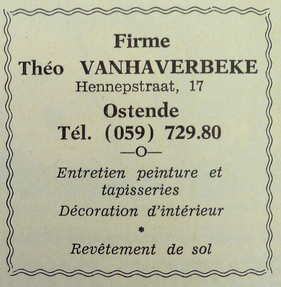 Trefwoorden ADVERTENTIES ; SCHILDERWERKEN DECORATIEWERKEN VANHAVERBEKE THEO (SCHILDERWERKEN) HENNEPSTRAAT Plaatskenmerk ARCHIEF 117.8 B35 COUR1972 22-12-1972 Auteurs Anoniem Bron Le Courrier du Littoral Pagina's 4 Print