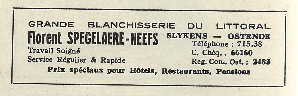 Advertentie : Florent Spegelaere-Neefs. Grande Blanchisserie du Littoral. Slykens - Ostende