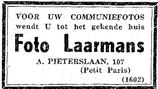 Trefwoorden ADVERTENTIES ; FOTOGRAFIE FOTOSTUDIO LAARMANS (FOTOGRAFIE) ALFONS PIETERSLAAN Plaatskenmerk O.D.P.-archieven. Bibliotheek Kris Lambert NIEU1952 30-05-1952 Bron Nieuwsblad van de Kust Pagina's 4 Print