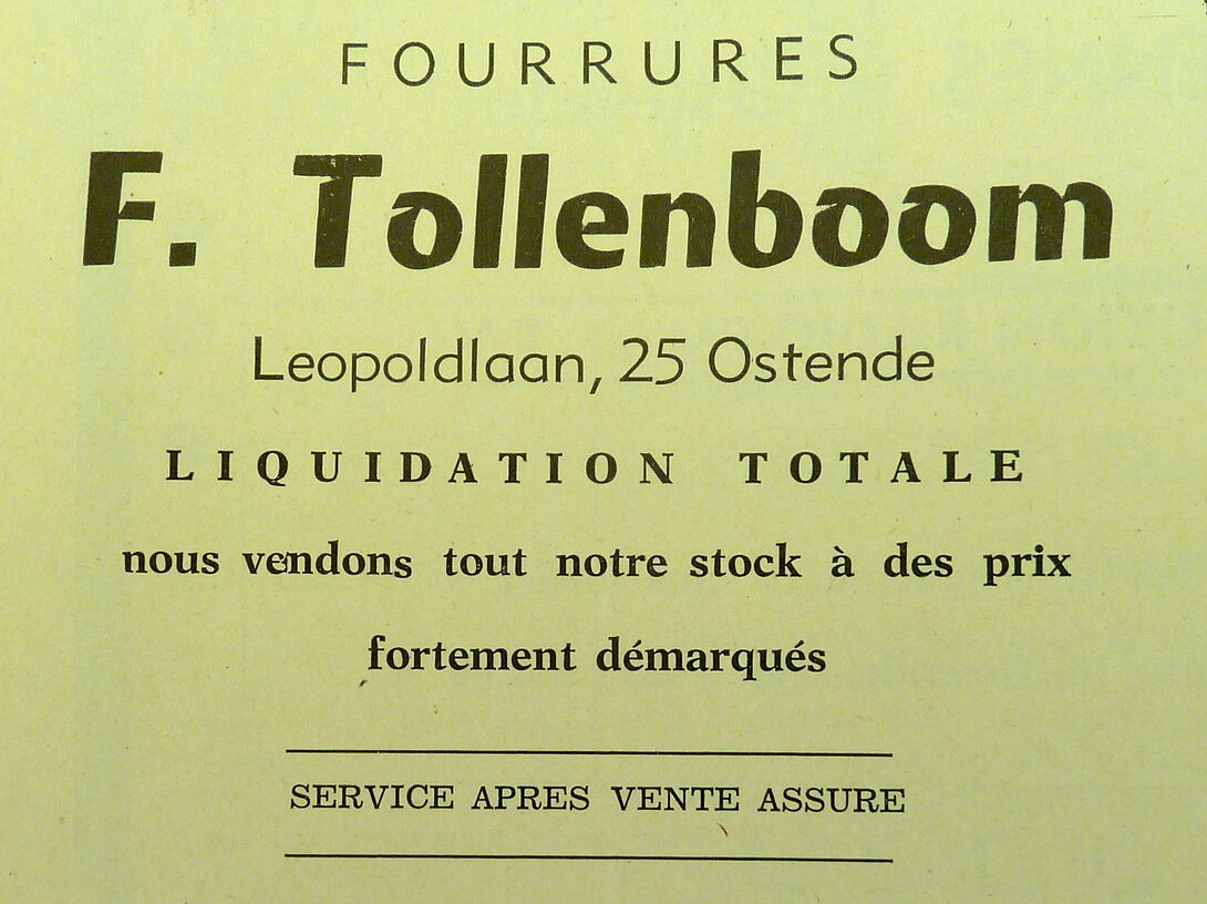 Trefwoorden ADVERTENTIES ; KLEDING F. TOLLENBOOM (BONTHANDEL) LEOPOLD II-LAAN Plaatskenmerk ARCHIEF 117.8 B35 COUR1970 30-10-1970 Auteurs Anoniem Bron Le Courrier du Littoral Pagina's 4 Print