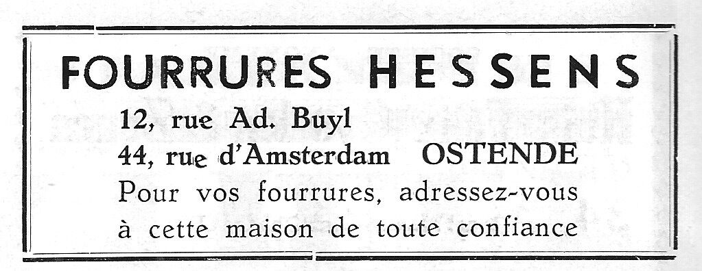 Advertentie : Fourrures Hessens. Bonthandel. Adolf Buylstraat 12 en Amsterdamstraat 44, Oostende