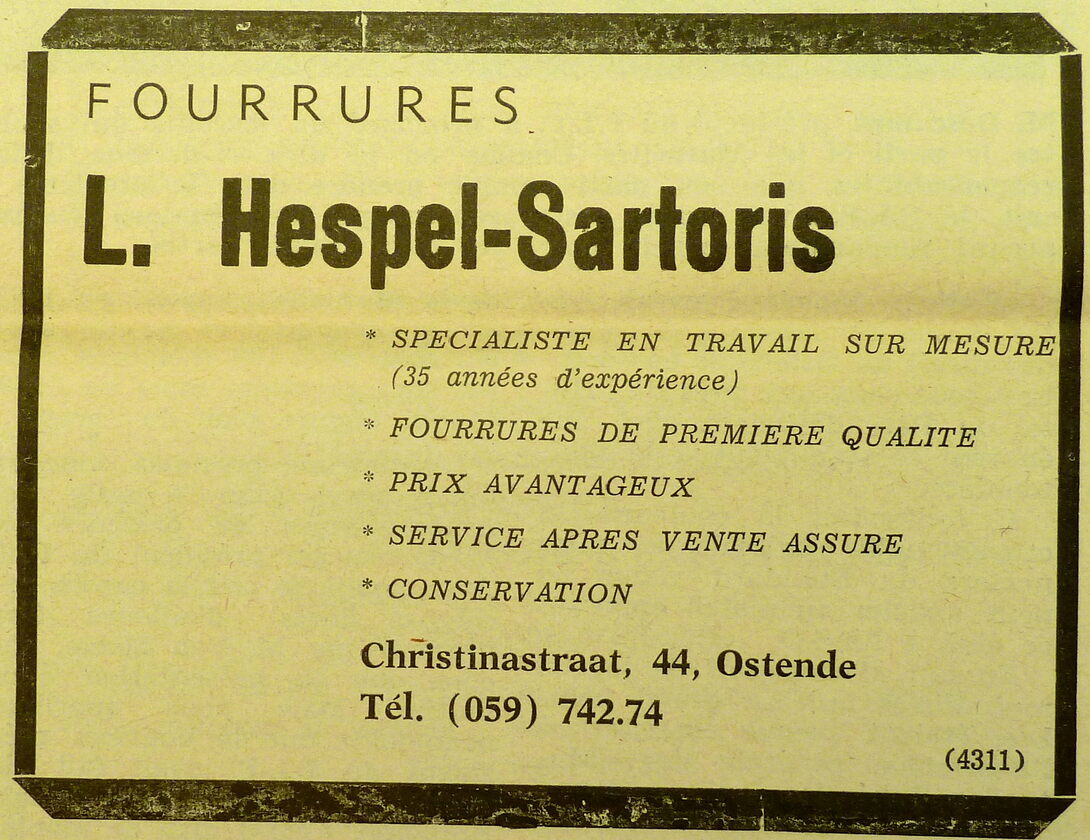 Trefwoorden ADVERTENTIES ; KLEDING L. HESPEL-SARTORIS (BONTHANDEL) CHRISTINASTRAAT Plaatskenmerk ARCHIEF 117.8 B35 COUR1969 26-09-1969 Auteurs Anoniem Bron Le Courrier du Littoral Pagina's 4 Print