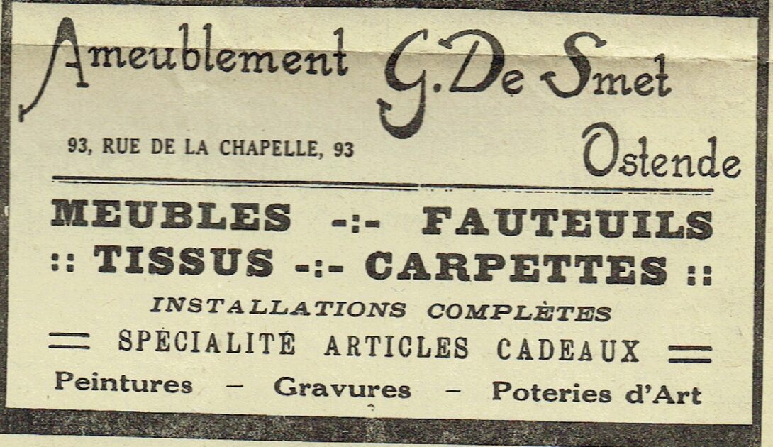 Advertentie : G. De Smet. Ameublement. 93, rue de la Chapelle, Ostende