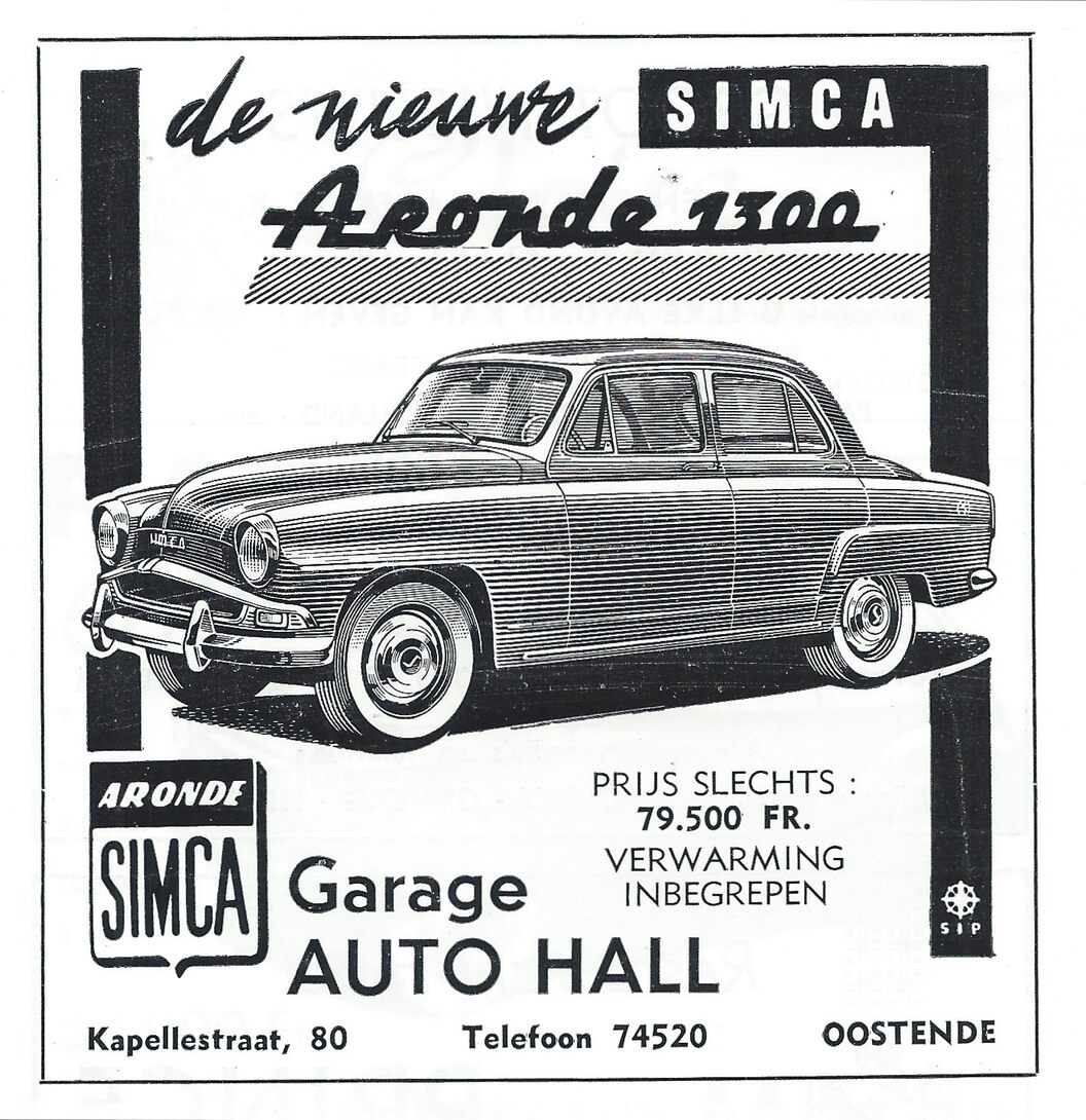 Advertentie : Garage Auto Hall. Simca Aronde 1300. Kapellestraat 80, Oostende