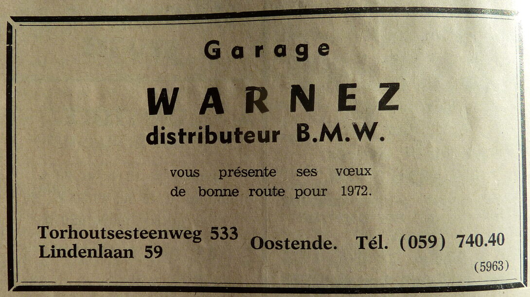 Omschrijving distributeur BMW Trefwoorden ADVERTENTIES ; GARAGES GARAGE WARNEZ TORHOUTSESTEENWEG LINDENLAAN Plaatskenmerk ARCHIEF 117.8 B35 COUR1971 31-12-1971 Auteurs Anoniem Bron Le Courrier du Littoral Pagina's 8 Print