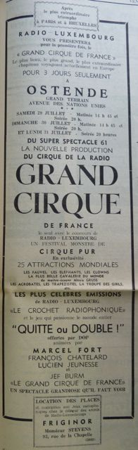 Trefwoorden ADVERTENTIES ; CIRCUSSEN GRAND CIRQUE DE FRANCE (CIRCUS) VERENIGDE-NATIESLAAN CIRCUSSEN Plaatskenmerk ARCHIEF 117.8 B35 COUR1961 21-07-1961 Auteurs Anoniem Bron Le Courrier du Littoral Pagina's 3 Print