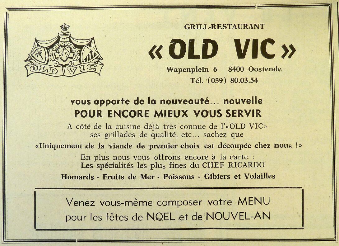 Advertentie : Grill-Restaurant "Old Vic". Wapenplein 6, Oostende