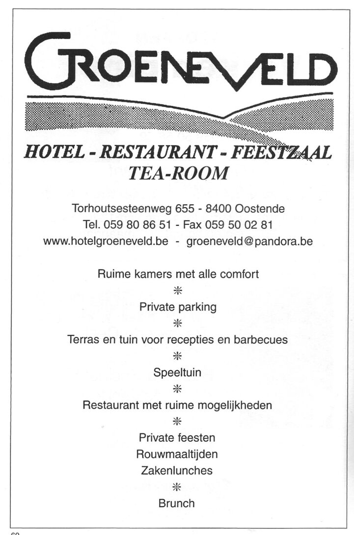 Trefwoorden ADVERTENTIES ; HORECA GROENEVELD (HOTEL RESTAURANT FEESTZAAL TEA ROOM) TORHOUTSESTEENWEG Plaatskenmerk MUSEUMDEPOT 117.7 A14 D2 Deelbeschrijving uit boek of document Programma : Mo gow zeg 2006 Pagina 60 Print