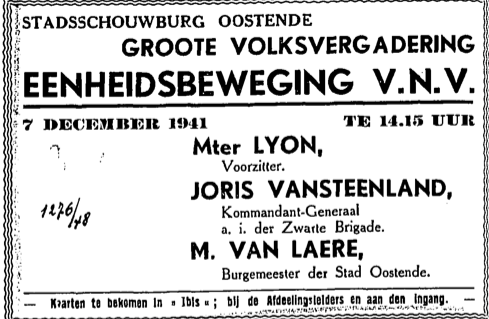 Trefwoorden ADVERTENTIES ; TWEEDE WERELDOORLOG VLAAMSCH NATIONAAL VERBOND (VNV) COLLABORATIE ; TWEEDE WERELDOORLOG VAN STEENLAND JORIS VAN LAERE ALBERT (1895-1968) (BURGEMEESTER) KONINKLIJKE SCHOUWBURG (VAN ISEGHEMLAAN) ; EVENEMENTEN Plaatskenmerk O.D.P.-archieven. Bibliotheek Kris Lambert STRA1941 29-11-1941 Bron Het Strand Pagina's 2 Print