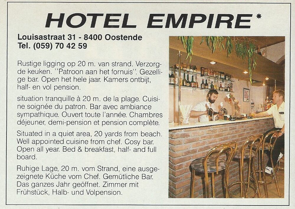 Trefwoorden ADVERTENTIES ; HORECA HOTEL EMPIRE (LOUISASTRAAT) LOUISASTRAAT Plaatskenmerk C494 Deelbeschrijving uit boek of document Oostende [92] 1991 Pagina 52 Print