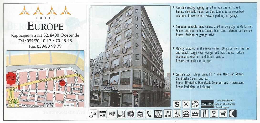 Trefwoorden ADVERTENTIES ; HORECA HOTEL EUROPE (KAPUCIJNENSTRAAT) KAPUCIJNENSTRAAT Plaatskenmerk ARCHIEF 110 ARCHIEFDOOS TOERISME Inventarisnummers 2023/0460 Deelbeschrijving uit boek of document Brochure : Oostende logies 1996 Pagina 11 Print