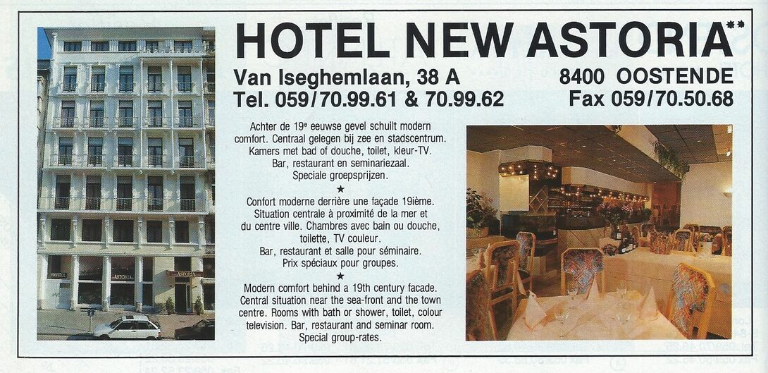 Trefwoorden ADVERTENTIES ; HORECA HOTEL ASTORIA VAN ISEGHEMLAAN Plaatskenmerk C698 Deelbeschrijving uit boek of document Oostende [93] 1993 Pagina 44 Print
