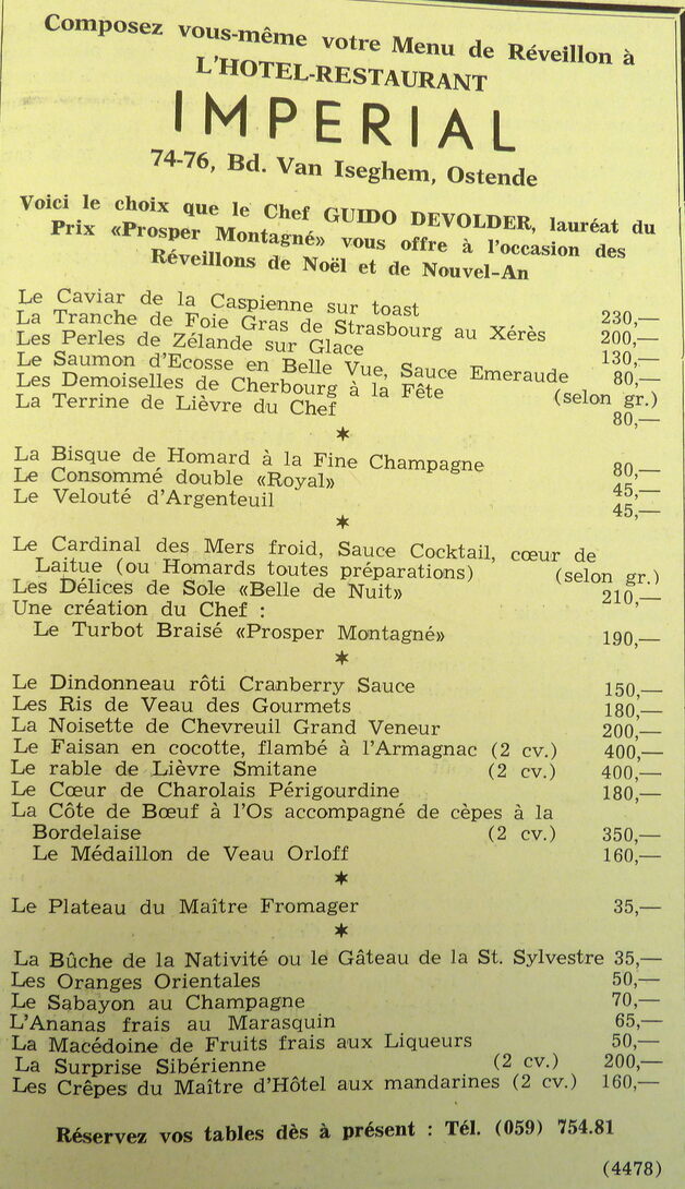 Trefwoorden ADVERTENTIES ; HORECA HOTEL IMPERIAL (VAN ISEGHEMLAAN 76) MENU'S GASTRONOMIE DEVOLDER GUIDO (KOK) VAN ISEGHEMLAAN Plaatskenmerk ARCHIEF 117.8 B35 COUR1969 12-12-1969 Auteurs Anoniem Bron Le Courrier du Littoral Pagina's 7 Print