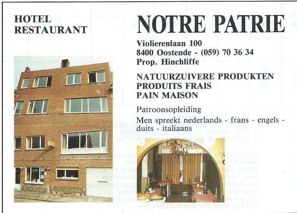 Advertentie : Hotel - Restaurant Notre Patrie. Violierenlaan 100, Oostende