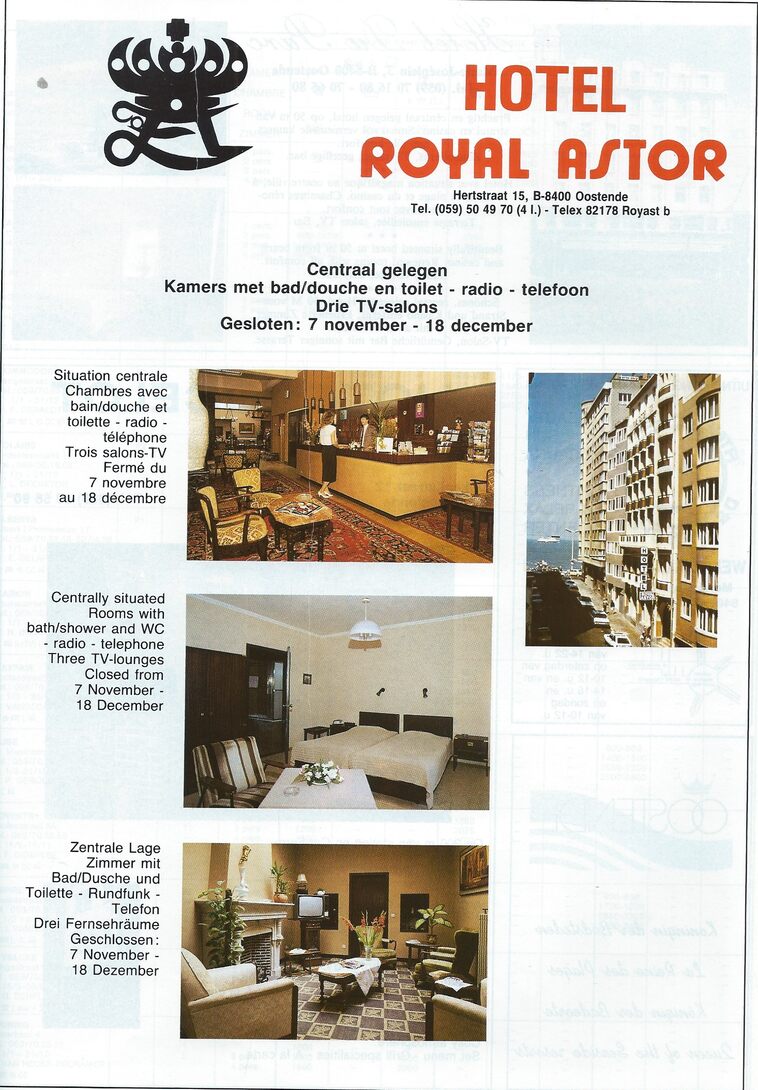 Advertentie : Hotel Royal Astor. Hertstraat 15, Oostende