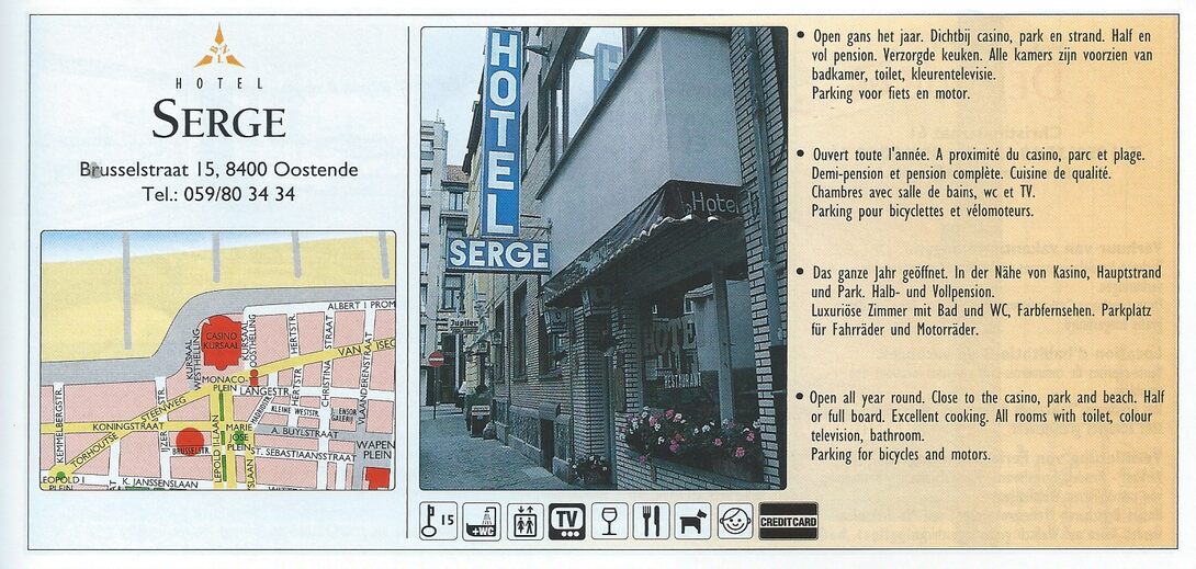 Trefwoorden ADVERTENTIES ; HORECA HOTEL SERGE BRUSSELSTRAAT Plaatskenmerk C696 Deelbeschrijving uit boek of document Logies 1998 Pagina 31 Print