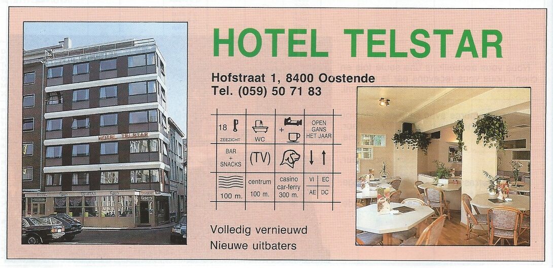 Trefwoorden ADVERTENTIES ; HORECA HOTEL TELSTAR HOFSTRAAT Plaatskenmerk A339 Deelbeschrijving uit boek of document Oostende 89 1988 Pagina 58 Print