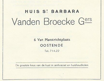 Advertentie : Huis St. Barbara. Vanden Broecke Gers. Kolenhandel. Filip Van Maestrichtplein 6, Oostende