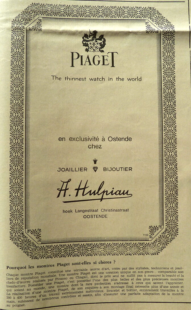Advertentie : A. Hulpiau. Joaillier - Bijoutier. Hoek Langestraat Christinastraat Oostende
