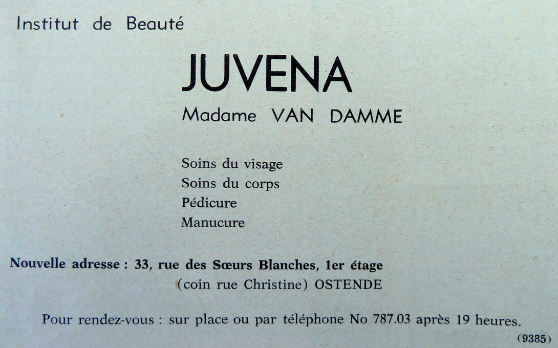 Advertentie : Institut de beauté JUVENA. 33, rue des Soeurs Blanches, 1er étage, Ostende