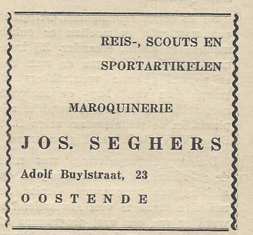 Advertentie : Jos. Seghers. Maroquinerie. Adolf Buylstraat 23, Oostende