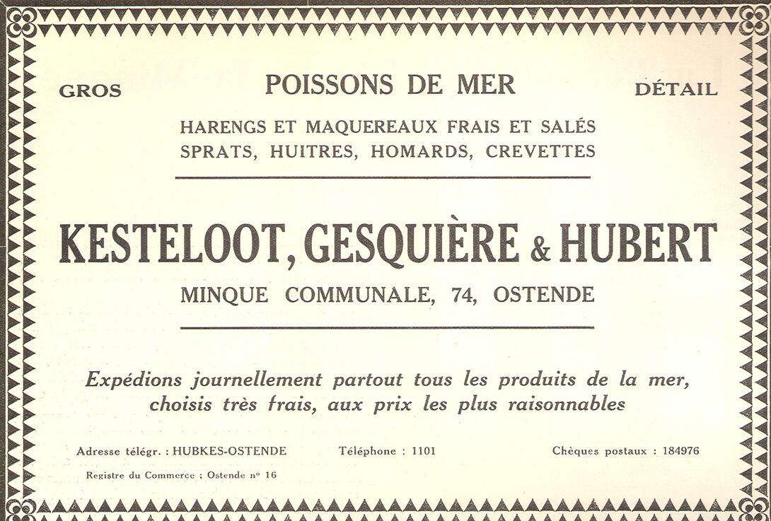 Advertentie : Kesteloot, Gesquière & Hubert. Poissons de mer, gros, détail. Vismijn 74