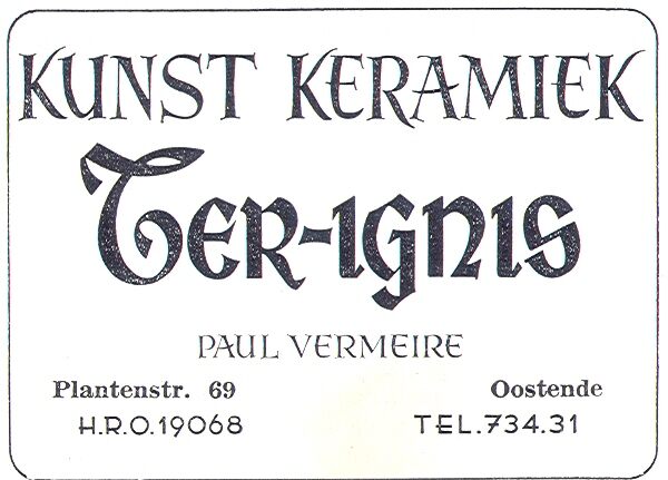 Advertentie : Kunst Keramiek Ter-ignis. Paul Vermeire. Plantenstraat 69