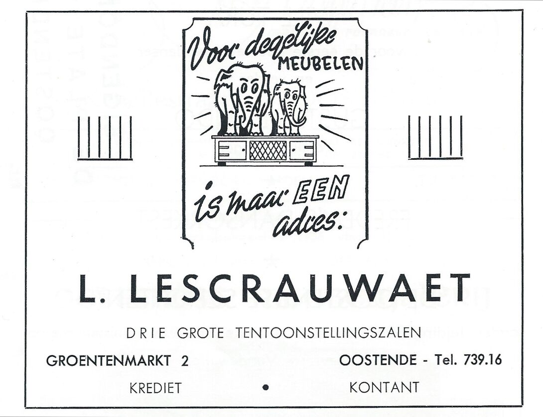 Advertentie : L. Lescrauwaet. Meubelen. Groentemarkt 2, Oostende