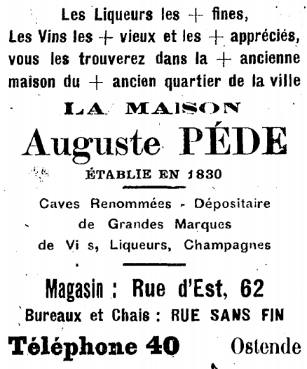 Omschrijving Magasin : Rue d'Est, 62. Bureaux et Chais : Rue Sans Fin Trefwoorden ADVERTENTIES ; WIJN- EN DRANKENHANDEL PEDE AUGUSTE (WIJN EN LIKEURENHANDEL) OOSTSTRAAT STRAAT ZONDER EINDE Plaatskenmerk O.D.P.-archieven. Bibliotheek Kris Lambert 02-01-1920 Bron La Saison d'Ostende Pagina's 2 Print