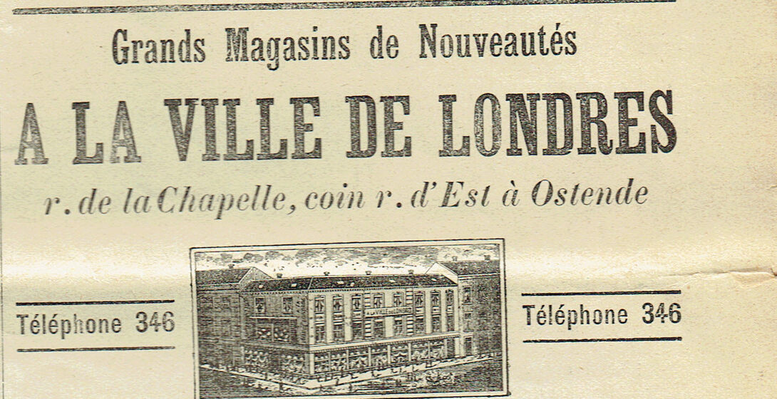 Advertentie : A la Ville de Londres. Rue de la Chapelle (coin rue d'Est), Ostende