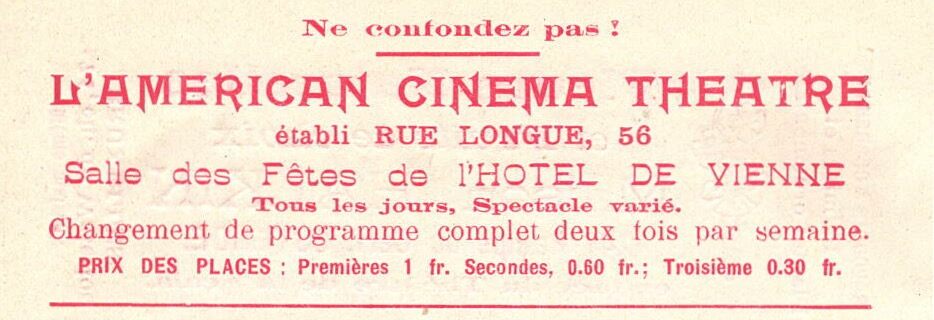 Salle des Fêtes de l'Hotel de Vienne. Tous les jours, spectacle varié. Changement de programme deux fois par semaine. Prix des places : Premières 1 fr. Secondes 0.60 fr. Troisième 0.30 fr. - Map 015 D-16
