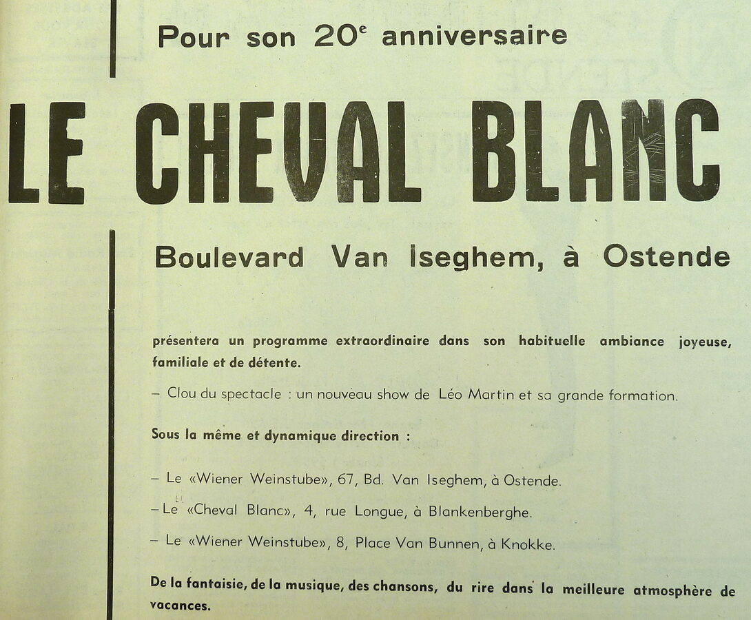 Trefwoorden ADVERTENTIES ; EVENEMENTEN IN 'T WITTE PAARD - AU CHEVAL BLANC (FEESTZAAL) ; PROGRAMMA'S Plaatskenmerk ARCHIEF 117.8 B35 COUR1968 10-05-1968 Auteurs Anoniem Bron Le Courrier du Littoral Pagina's 3 Print
