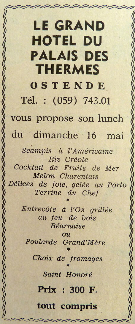 Trefwoorden ADVERTENTIES ; HORECA GRAND HOTEL DU PALAIS DES THERMES MENU'S GASTRONOMIE Plaatskenmerk ARCHIEF 117.8 B35 COUR1971 14-05-1971 Auteurs Anoniem Bron Le Courrier du Littoral Pagina's 3 Print