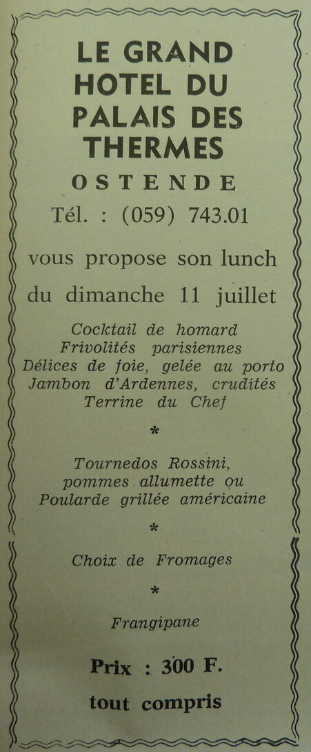 Trefwoorden ADVERTENTIES ; HORECA GRAND HOTEL DU PALAIS DES THERMES MENU'S GASTRONOMIE Plaatskenmerk ARCHIEF 117.8 B35 COUR1971 09-07-1971 Auteurs Anoniem Bron Le Courrier du Littoral Pagina's 7 Print