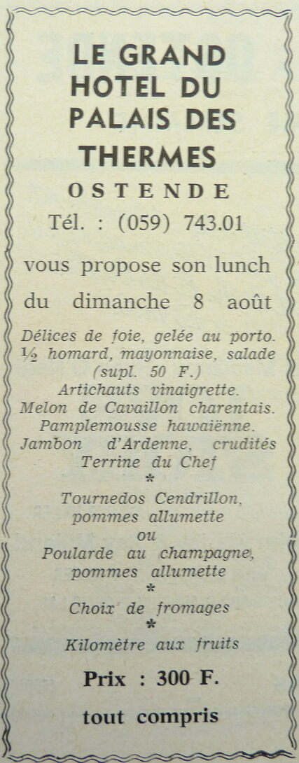 Trefwoorden ADVERTENTIES ; HORECA GRAND HOTEL DU PALAIS DES THERMES MENU'S GASTRONOMIE Plaatskenmerk ARCHIEF 117.8 B35 COUR1971 06-08-1971 Auteurs Anoniem Bron Le Courrier du Littoral Pagina's 4 Print