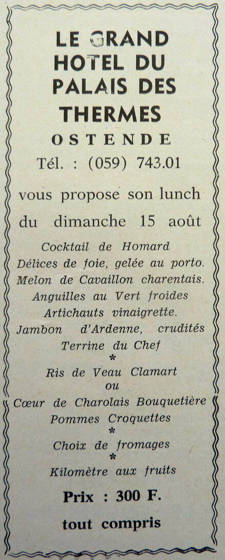 Trefwoorden ADVERTENTIES ; HORECA GRAND HOTEL DU PALAIS DES THERMES MENU'S GASTRONOMIE Plaatskenmerk ARCHIEF 117.8 B35 COUR1971 13-08-1971 Auteurs Anoniem Bron Le Courrier du Littoral Pagina's 4 Print