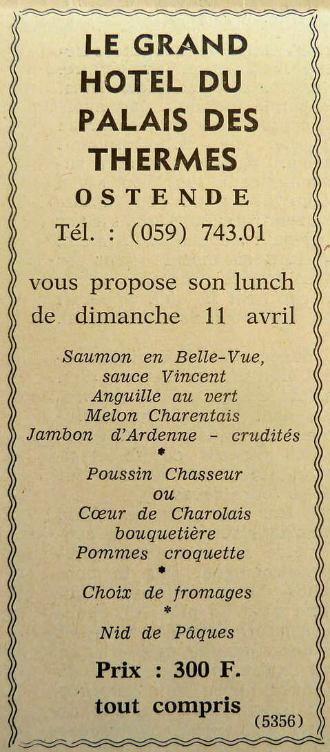Trefwoorden ADVERTENTIES ; HORECA GRAND HOTEL DU PALAIS DES THERMES MENU'S GASTRONOMIE Plaatskenmerk ARCHIEF 117.8 B35 COUR1971 09-04-1971 Auteurs Anoniem Bron Le Courrier du Littoral Pagina's 4 Print