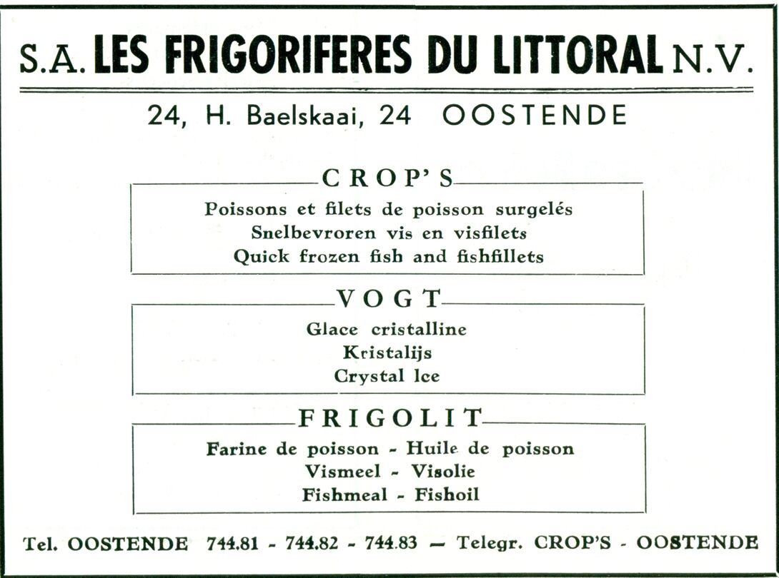 Advertentie : Les Frigorifères du Littoral nv. Hendrik Baelskaai 24, Oostende