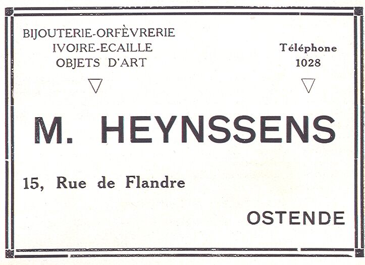 Trefwoorden HEYNSSENS M. (JUWELIER) VLAANDERENSTRAAT ADVERTENTIES ; HANDEL Plaatskenmerk A525 Inventarisnummers 2012/3079 Deelbeschrijving uit boek of document Ostende : reine des plages = queen of seaside resorts Auteurs Anoniem Pagina [30] Print