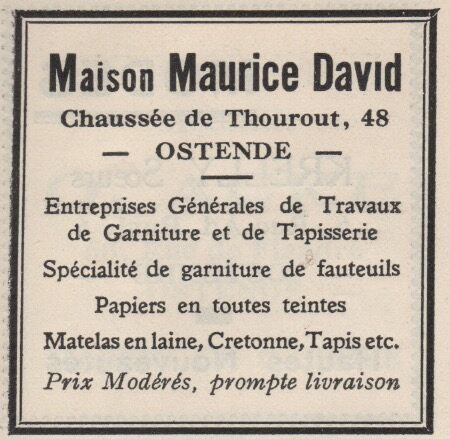 Entreprises générales de travaux de garniture et de tapisserie. Spéialité de garniture de fauteuils. Papiers en toutes teintes. Matelas en laine, cretonne, tapis etc. Prix modérés, prompte livraison