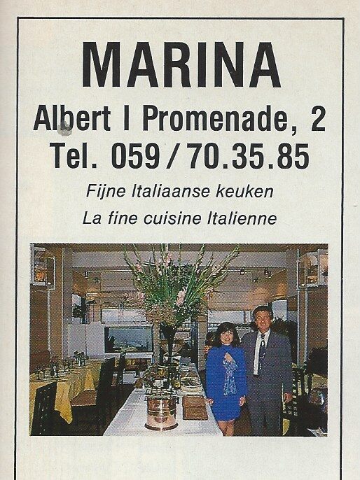 Trefwoorden ADVERTENTIES ; HORECA MARINA (RESTAURANT) ALBERT I PROMENADE Plaatskenmerk C494 Deelbeschrijving uit boek of document Oostende [92] 1991 Pagina 65 Print
