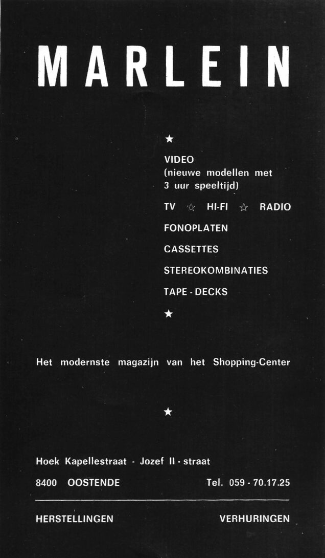 Trefwoorden ADVERTENTIES ; HANDEL RADIO MARLEIN KAPELLESTRAAT JOZEF II-STRAAT Inventarisnummers 2013/1916 Deelbeschrijving uit boek of document Programma : Vergit da mo 1978 Pagina 1 Print