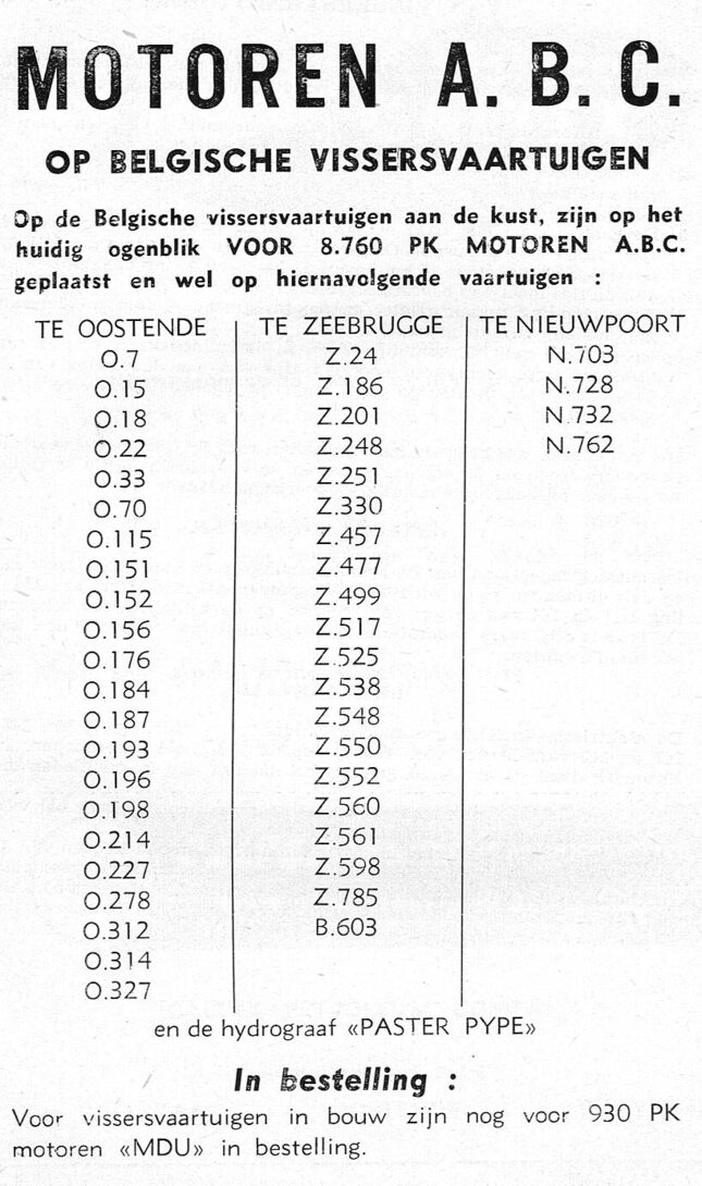 Advertentie : Motoren ABC op Belgische vissersvaartuigen