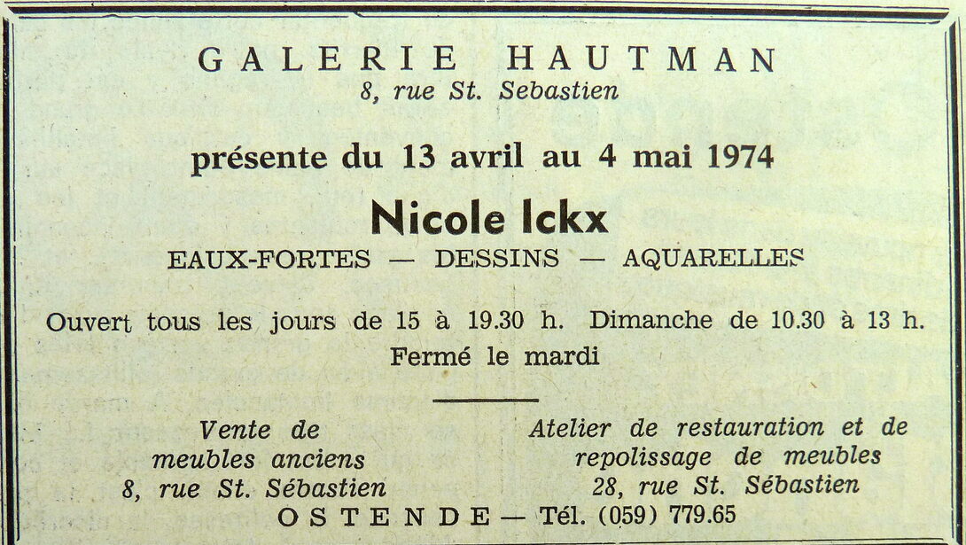 Advertentie : Nicole Ickx. Galerij Hautman. 13/04-04/05/1974